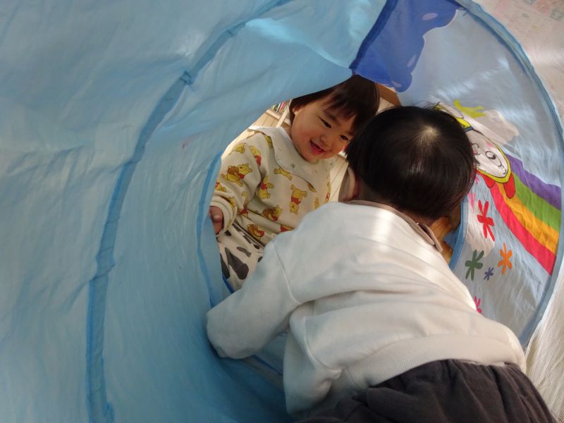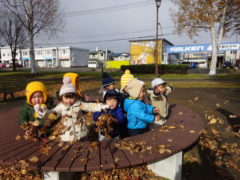 もうすっかり季節は冬?寒さが身に沁みますね。それでも子ども達は元気に遊んでおり、そんな姿にたくましさを感じているこの頃です。お散歩に行けば、「きゅうきゅうしゃいるかな?」「パトカーにあえるかな?」とお友だち同士で会話をし、歩きながら楽しいことを探していますよ☺