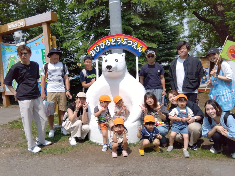新しくなったキリン舎からスタートし、しまうま、ホッキョクグマやサルを見て回りました。去年見ることができなかったフラミンゴは柵ギリギリの所まで行き釘付けの子ども達でした。その後も自分の力でたくさん歩くたいこさん。保護者の方に甘えて抱っこしてもらうらっぱさん。ベビーカーに乗って時々ウトウト・・・のすずさん。園生活とはちょっぴり違った姿を私たち職員も見ることができました。