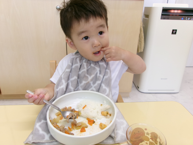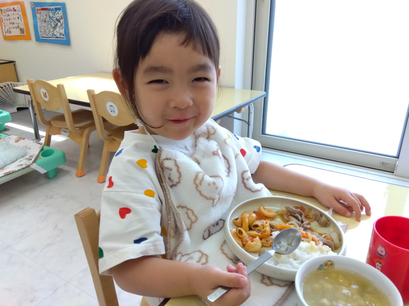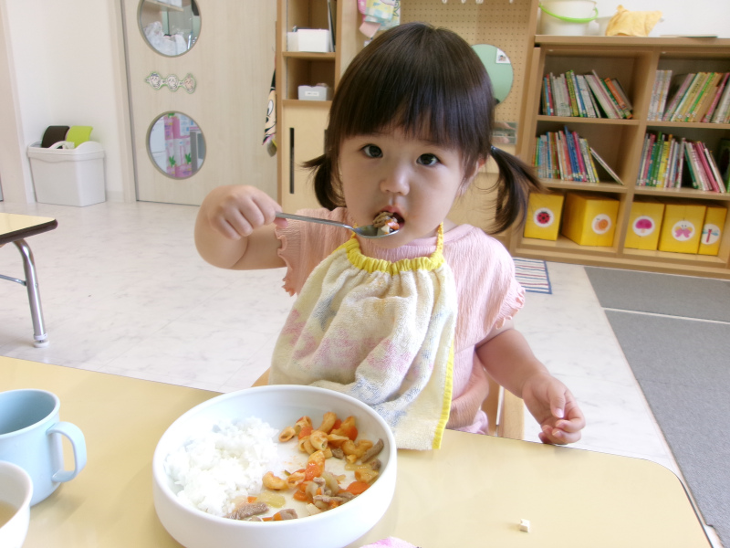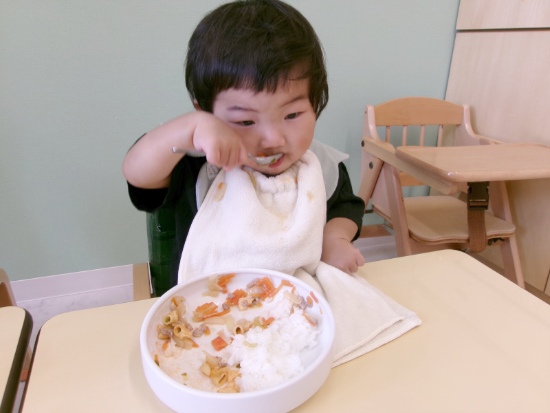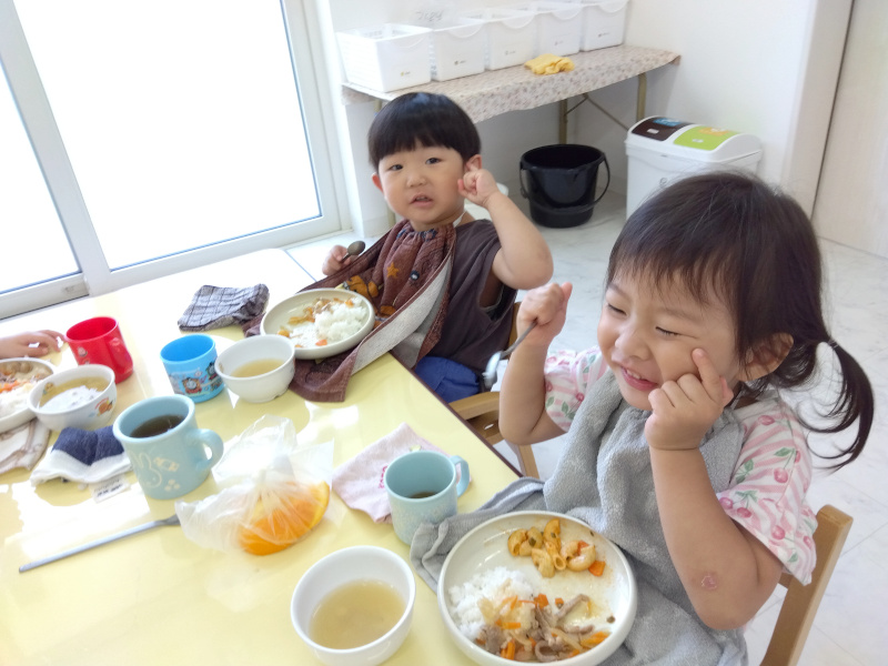 いただきますの挨拶をした後、大きな口でパクリと食べて「おいしー!」ごはんの進む味付けでいつもより進みが早く、おかわり続出でしたが、お肉好きな子で2回もおかわりした子もいました。大満足の豚丼の日となりました。