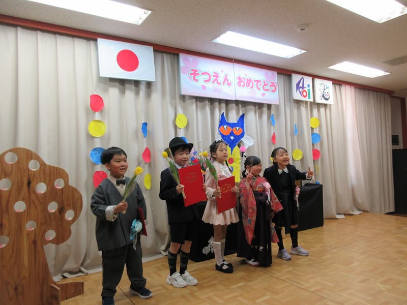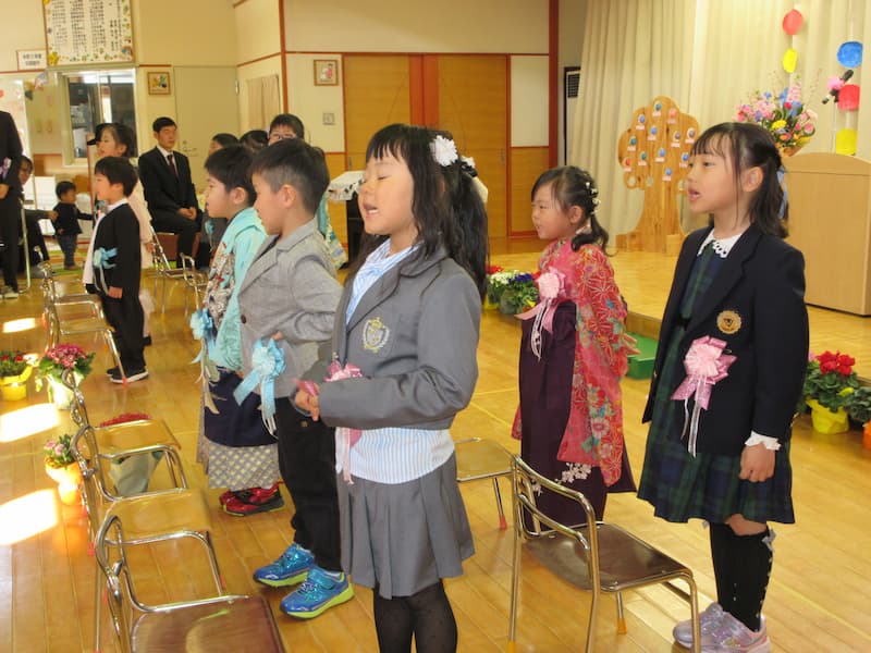 3月15日に卒園式が行われました。今年度は12名の子どもたちが卒園となりました。大好きなお父さん、お母さんに見守られ立派に証書を受け取っていた子どもたち。シュプレヒコールやおうたも大きな声で発表をし、逞しい姿に成長を感じました。