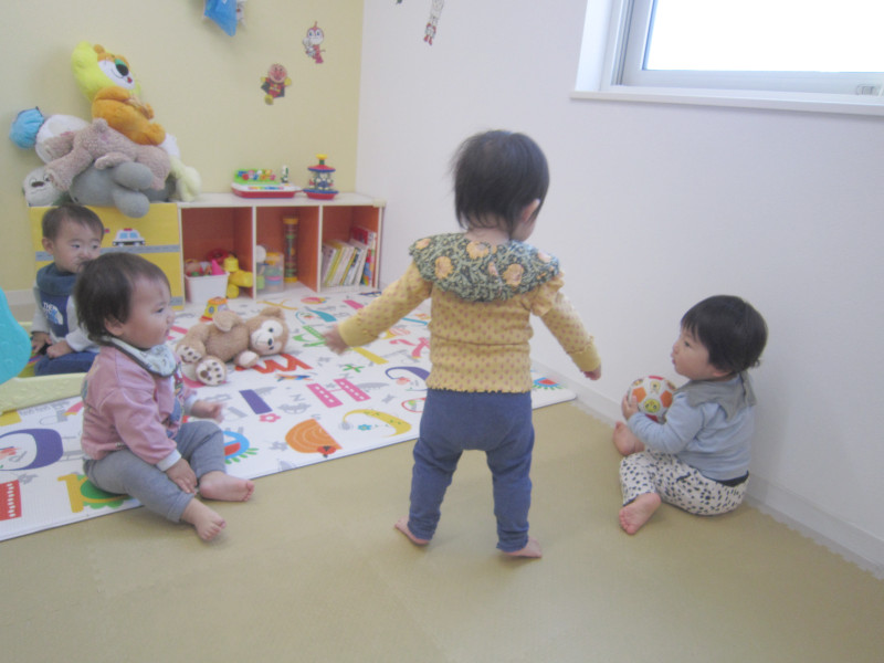 最近、お友だちとのやりとりが増えてきたばなな組さん。何やら本人たちにしかわからない言葉でお話し中…何を話しているのか気になる担任です(*^-^*)これから言葉が出てくるのが楽しみですね!