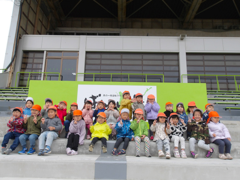 園外保育では,帯広競馬場へ行き,馬車に乗り,にんじんやりなどを体験することができました♬馬の迫力に驚く様子もありましたが,終わった後は「楽しかった!」とニコニコのひよこ組でした♪