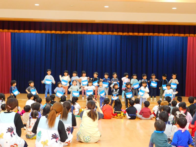 こんにちは!卒園まで残り1か月となりました。先日は、小学校の1日入学があり、就学に向けて期待感が高まっています! 2月19日・20日にはお別れ会が行われました。1日目は、他クラスとの交流を楽しみました。2日目は在園児が可愛いダンスや、職員によるバルーンを披露してくれましたよ(^^)ぞう組からは「マツケンサンバ」の踊りと「大丈夫」の歌を感謝を込めてお返ししました。 子ども達にとって、新たに素敵な思い出が出来ました。残りの園生活も楽しく過ごしていきます!