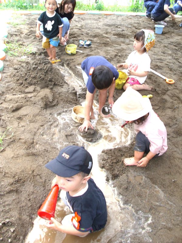 ぱちぱちルームも2学期が始まりました‼ 久しぶりの活動は、気温が上がったので砂場に水を出して楽しみましたよ♪♪