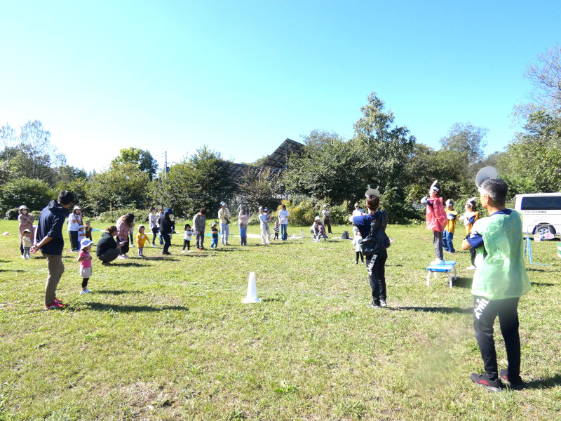 少しずつ木の葉が紅く色づき、秋を感じる季節となりました。ぱちぱちさんも、散策バッグいっぱいにどんぐりやとちの実を見つけて、目をキラキラさせていましたよ(*^^*) 秋の運動会(写真)では、青空の下、おかあさんおとうさんと一緒に走って踊って笑顔いっぱいに過ごしました。 これからも、沢山遊んで一緒に身体づくりをしていきましょうね♪