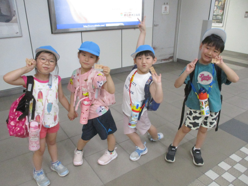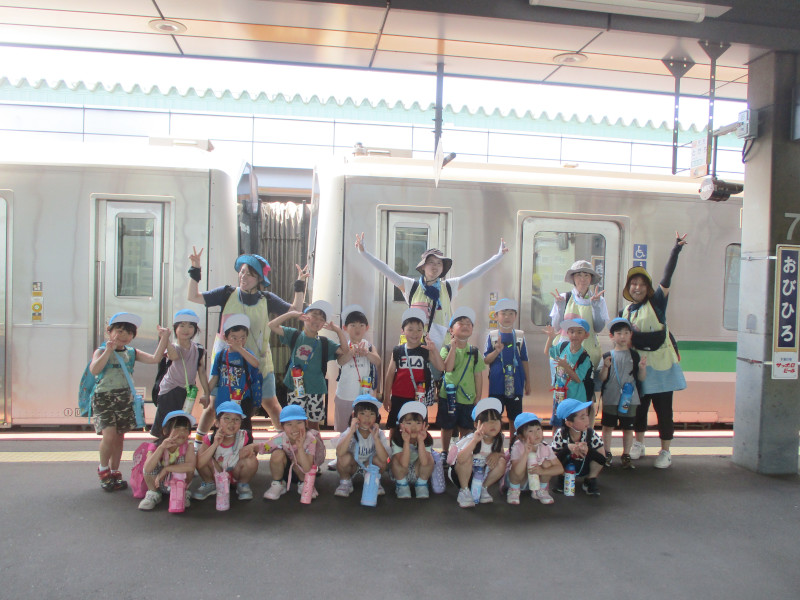 年長さんのお楽しみ会は一人ずつ券売機で切符を買い、電車に乗って幕別まで行きました。幕別駅に着くと、園から帯広駅まで乗っていたバスが先に到着していて「おんなじバスがいる!!バスのおじさんもおんなじ!!ワープした!?」と とってもワクワクした気持ちの子供たち! 幕別駅からはバスに乗り、明野が丘公園へ そのあとは帯広の児童会館へ行き、科学館といろいろぱーくでのたくさん遊びました行く先行く先で、ばばばあちゃんからの手紙が届き、ミッションをクリアしながら次はどこに手紙あるかな?ばばばあちゃんここにも来てたかも!とワクワクしながら楽しむ子供たちの様子が見られました!
