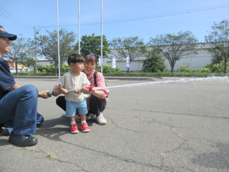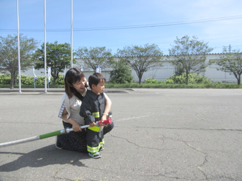 放水体験も、様になっていてちっびこ消防士、とってもかっこよかったですよ〜帰りは、まだ乗りたいと涙する子もいるくらい大満足の1時間でした!